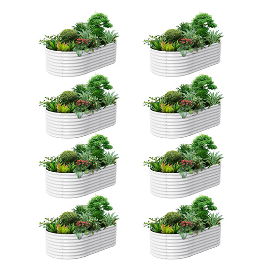 Set of 8: 8x4x2ft Oval Modular Metal Raised Garden Beds (Grey/White)
