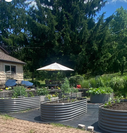 Set of 6: 8x4x2ft Oval Modular Metal Raised Garden Beds (Grey)