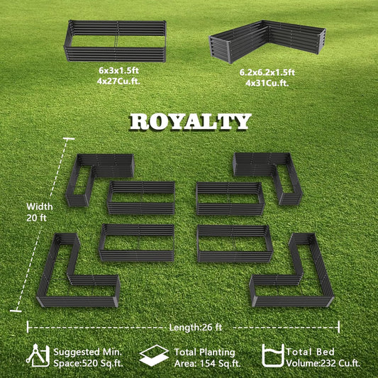 Set of 8: 70''x60''x18'' & 74''x74''x18'' Geometric Metal Raised Garden Bed Layout -Grey