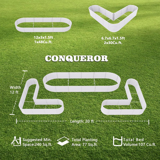 Set of 3: 144''x36''x18'' & 81''x81''x18'' Raised Garden Beds Layout(Grey/White)