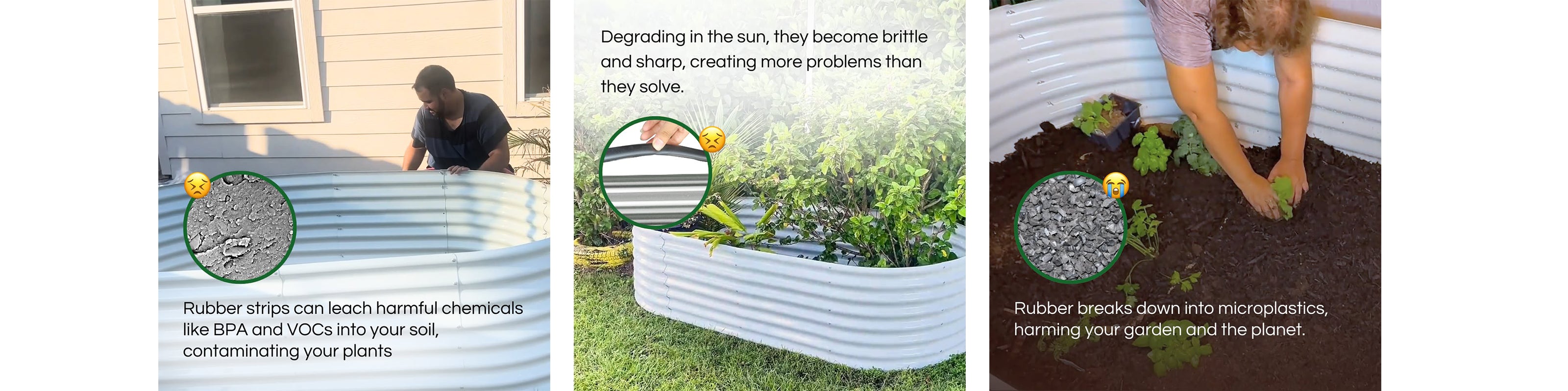 Our exclusive crimped-edge design eliminates the need for rubber strips, keeping your garden safe for kids, pets, and older adults—no toxins, no sharp edges.