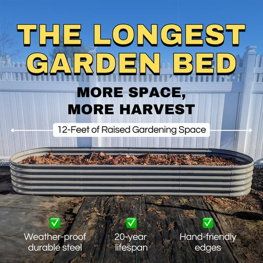 Set of 12: 8x4x2ft Oval Modular Metal Raised Garden Beds (Grey)