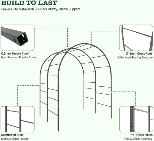 Garden Arch Trellis for Raised Beds – Heavy Duty Metal Tunnel Trellis
