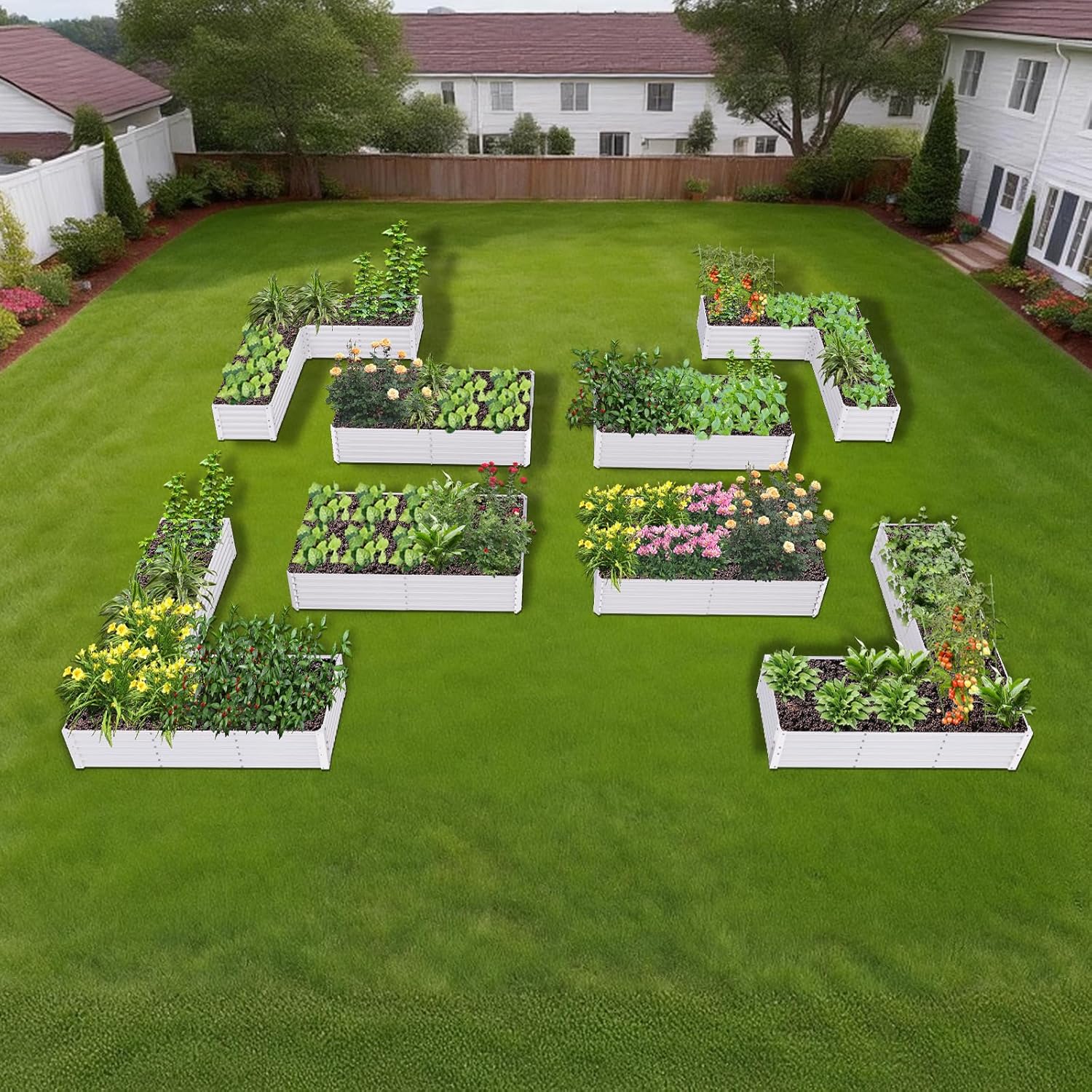Set of 8: 74''x74''x18'' & 72'' x36'' x18'' Geometric Metal Raised Garden Bed Layout - Gray/White)