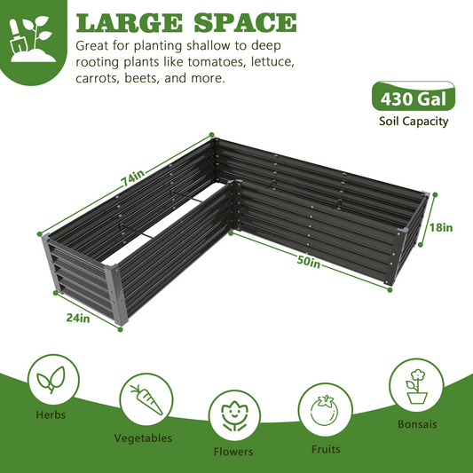 74''x74''x18'' L-shaped Galvanized Steel Raised Garden Bed - Gray