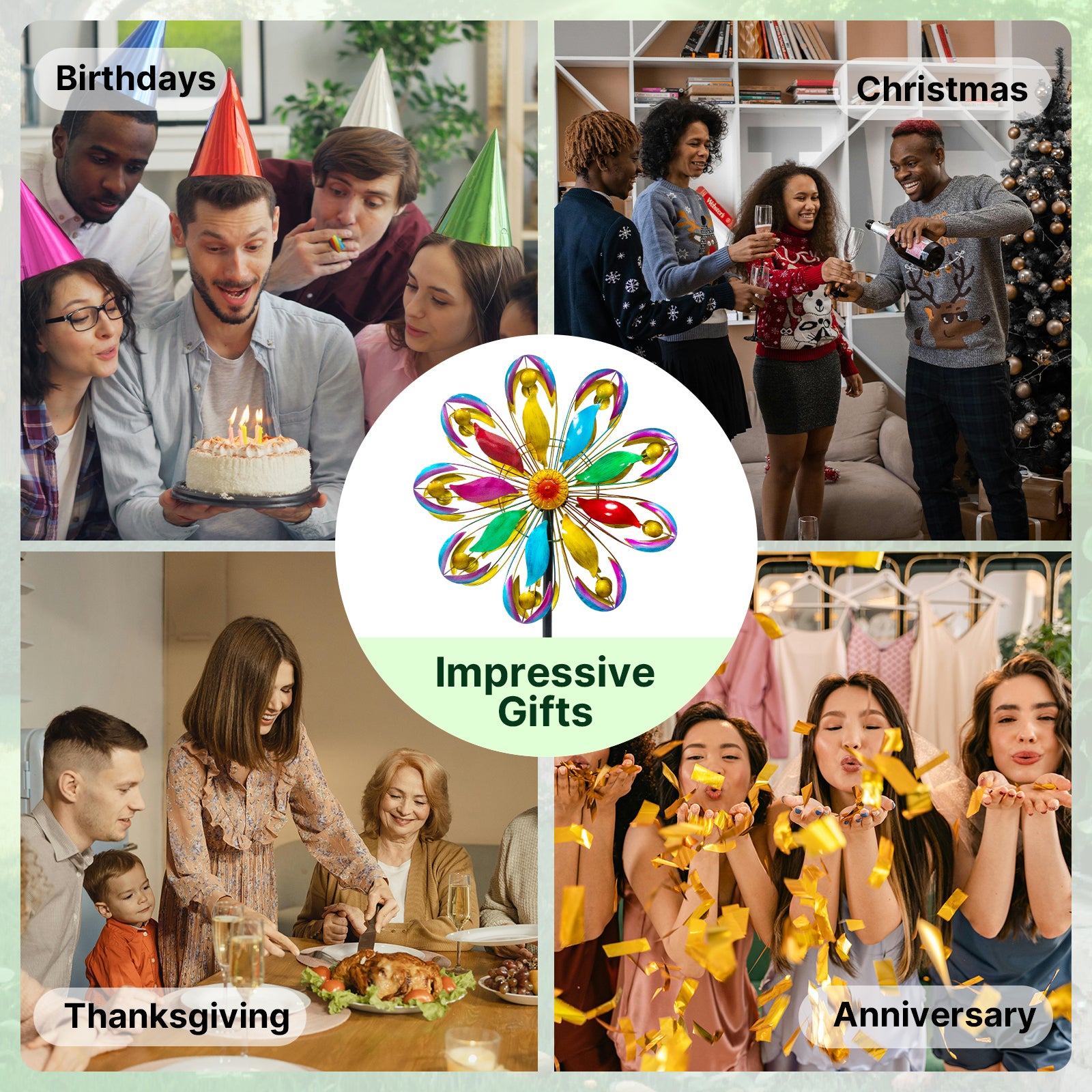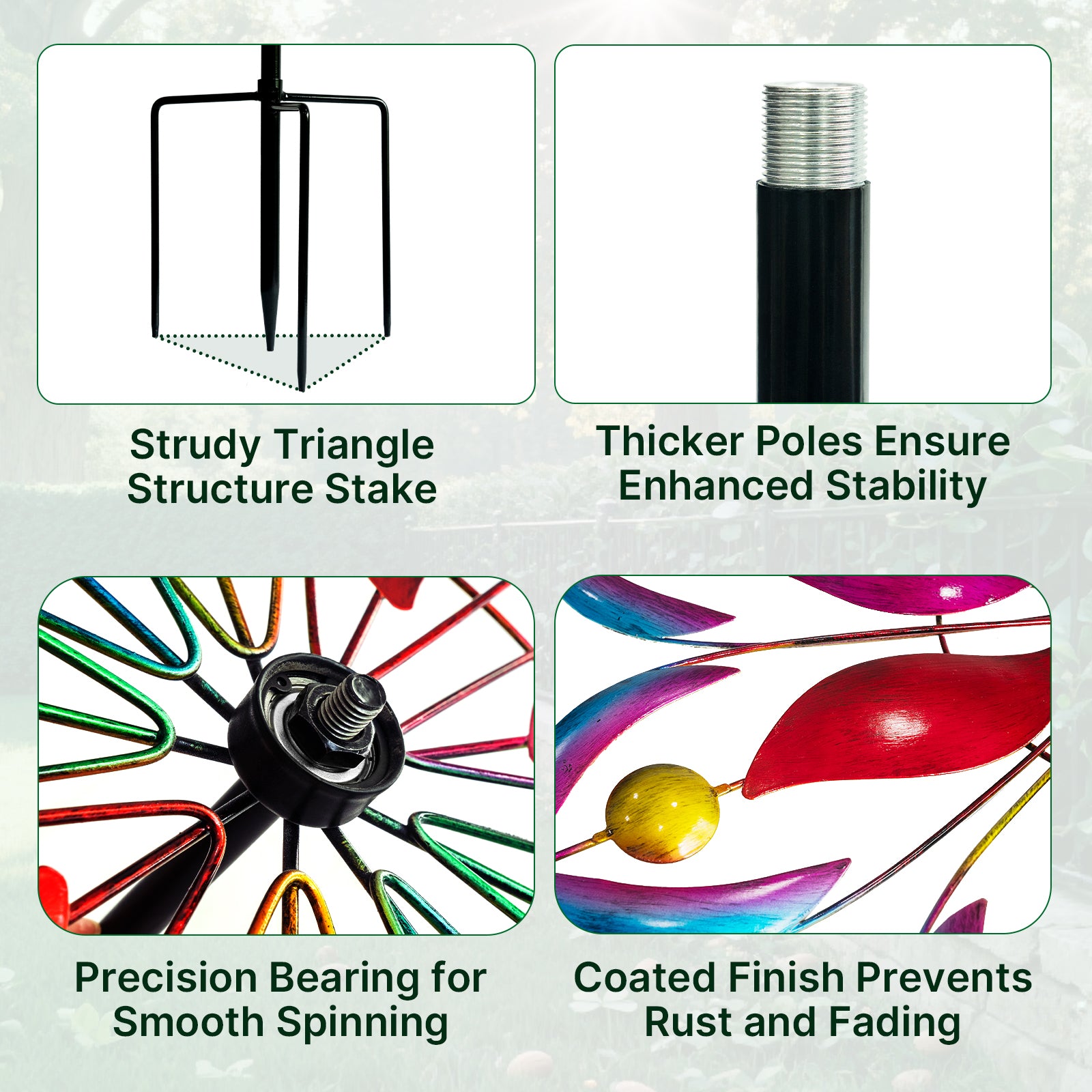 Features a unique double-spinner blade design that resembles a vibrant blue flame. It spins smoothly in the breeze, adding dynamic artistry and visual appeal to your garden.
